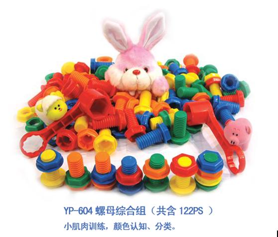 (3) 老师把组合螺丝和螺母的过程慢动作地演示给幼儿看。