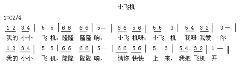 一名教师弹琴,一名教师和小朋友边唱歌曲,边学飞机飞。