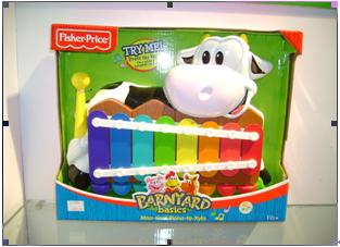 2、兴趣中心:宝宝能用力的将玩具小花牛敲响。